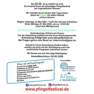 Am 23.05.2026 geht das Pfingstfestival 2026 los!