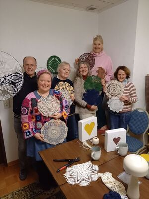 Upcycling Projekt "Kreis rund" trifft sich nach einem ersten Auftakttreffen Anfang des Jahres nun an weiteren Montagen. Jeweils ab 15 Uhr wird mit Interessierten gemeinsam kreativ gestaltet. Die Idee des Projektes ist aus den gespendeten Häkeldeckchen eine Installation zu erschaffen, die im Frühjahr in der Natur ihren Platz finden wird. Unterschiedliche Generationen schaffen einen individuellen Hingucker. Die oft schon "vergessenen" Häkeldecken finden so eine neue Bestimmung und bringen Menschen zusammen. Eine herzliche Einladung zum Gestalten!